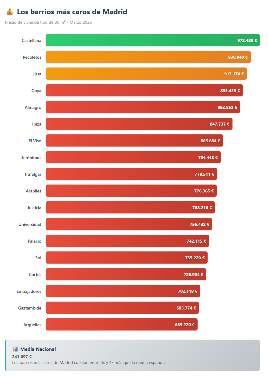 💰 Barrios de medio millón - Cuatro de cada diez barrios del ranking superan los 700.000€ para 80 m²