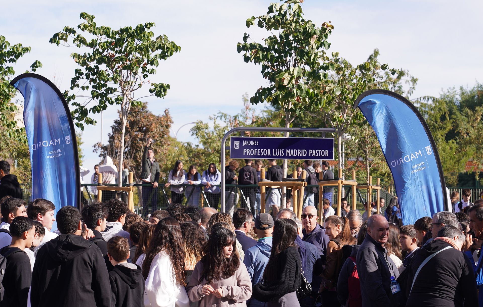 El parque de Valdebernardo Norte se renombra como "Jardines del Profesor Luis Madrid Pastor", docente del IES Valdebernardo durante 25 años fallecido en marzo en accidente de montaña. Pleno de Vicálvaro lo aprobó por unanimidad en julio tras propuesta vecinal. Espacio renovado entre colegio público e instituto, con placa inaugurada en septiembre junto a familias y alumnado.